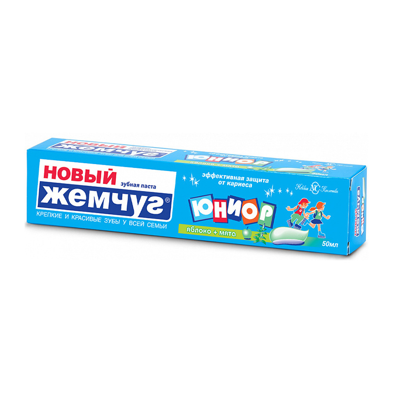 Зубная паста Жемчуг новый детская яблоко в футляре, 50 мл