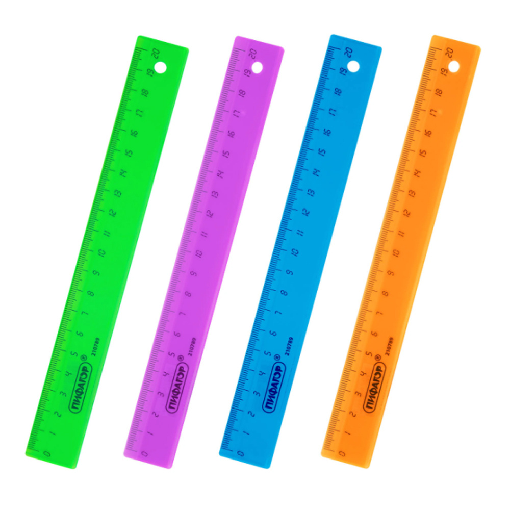 Линейка Пифагор 210789 прозрачная, неоновая, пластик, в ассортименте
