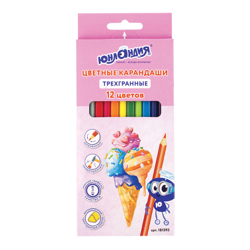 Карандаши цветные Юнландия 181393 Сладкие истории, трехгранные, грифель мягкий 3мм, 12 цветов