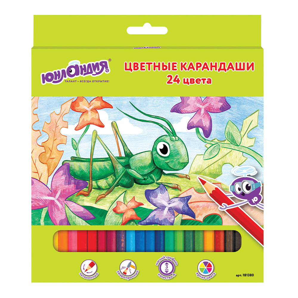 Карандаши цветные Юнландия 181380 В гостях в букашек, классические, заточенные, 24 шт