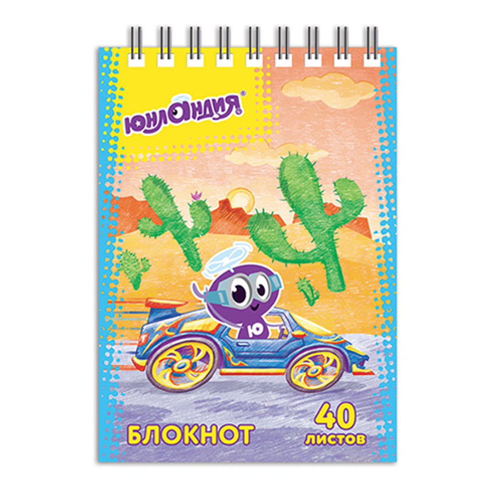 Блокнот Юнландия 129860 Мультяшки, А7 75*105мм, гребень, в клетку, 40 листов