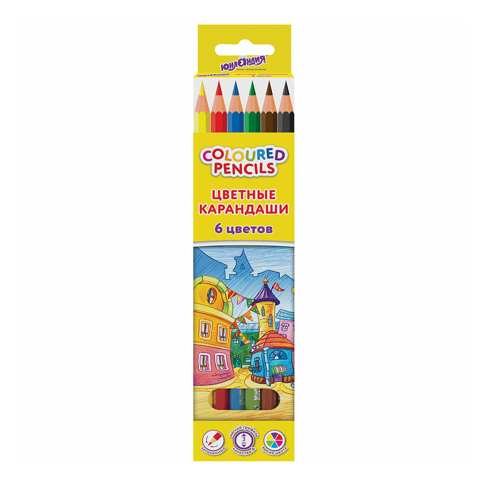 Карандаши цветные Юнландия 181835 Домики, 6 шт