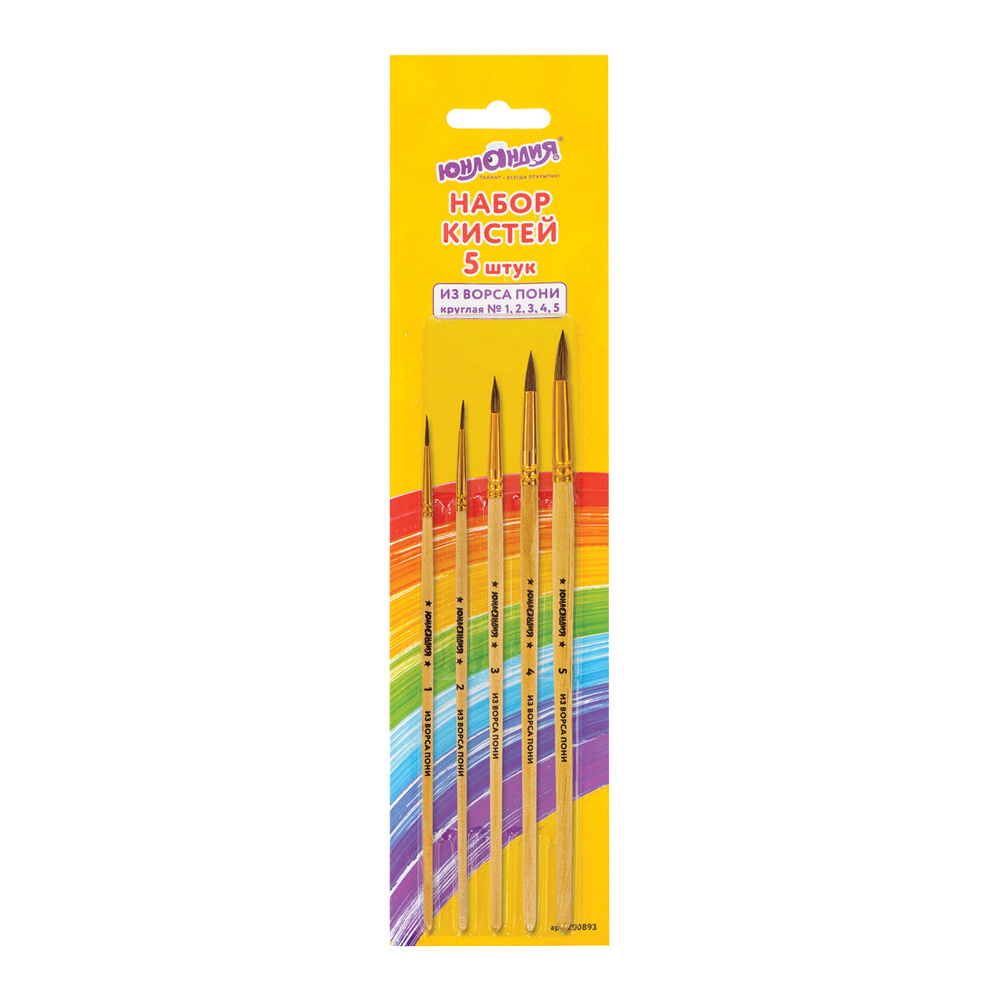 Кисти для рисования Юнландия 200893 из ворса пони кругл. № 1,2,3,4,5, 5 шт