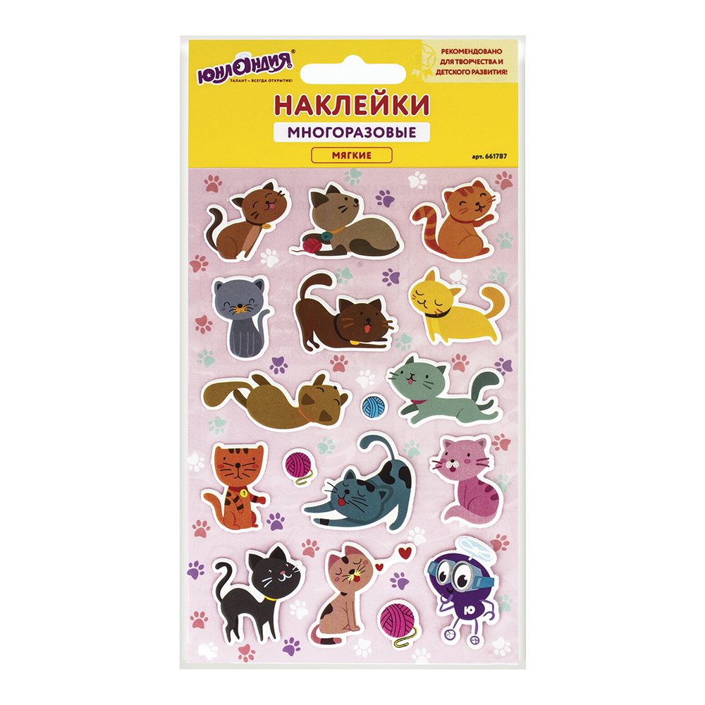 Наклейки Юнландия 661787 зефирные Котята, многоразовые 10*15 см