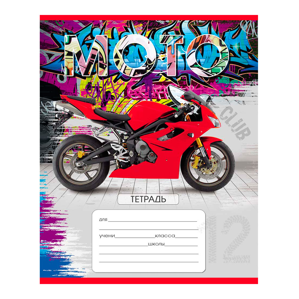 Тетради Проф-Пресс клетка, Мотоциклы и граффити, 5 дизайнов, 12 листов