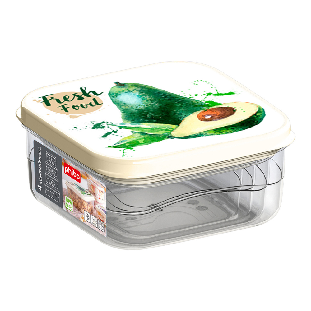 Набор контейнеров С32640 для продуктов с декором 4шт (0,3л 0,45л 0,65л 1л), рисунок авокадо