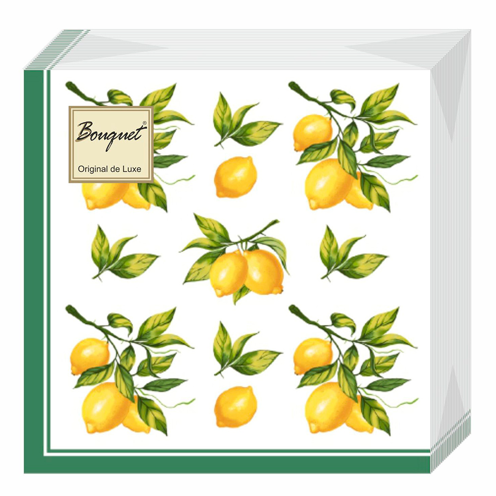 Салфетки бумажные Bouquet Original de Luxe, 2-х слойные, 33*33 см, Скатерть с лимонами, 20 листов