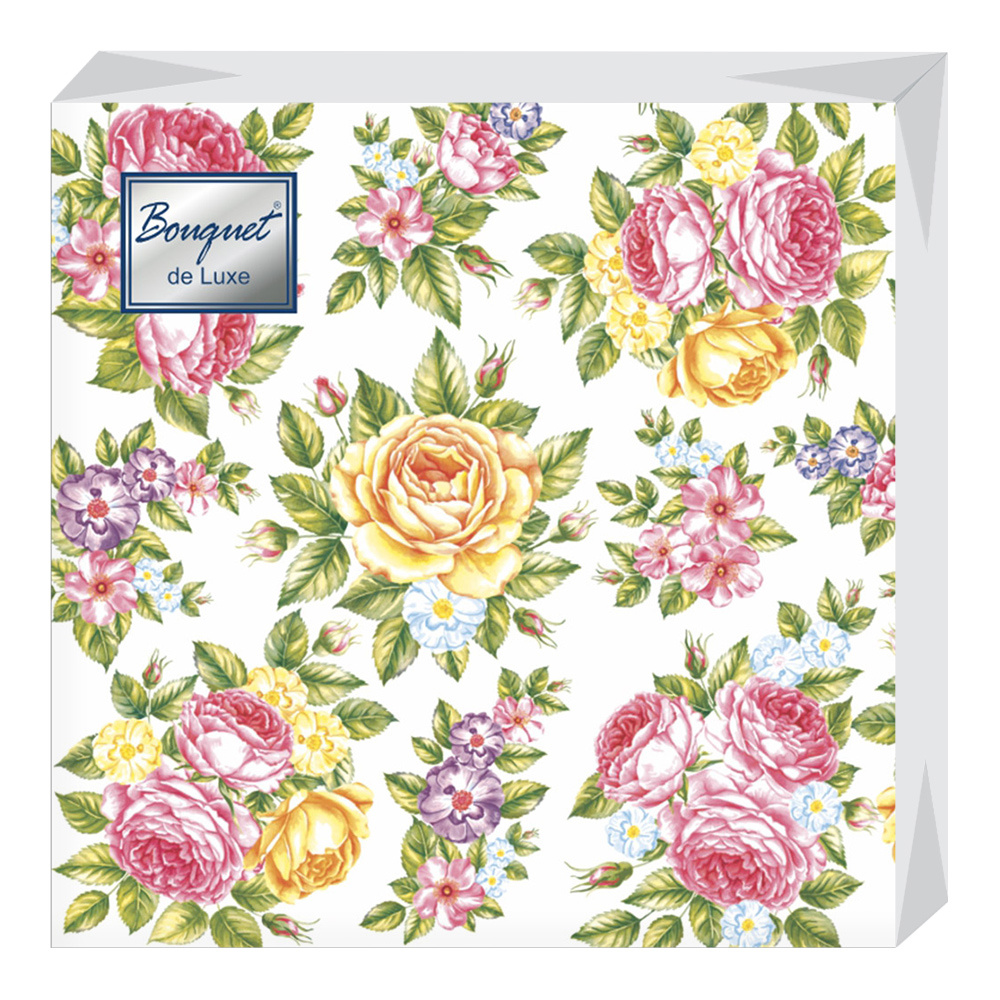 Салфетки бумажные Bouquet Original de Luxe, 2-х слойные, 33*33 см, Весенний букет, 20 листов