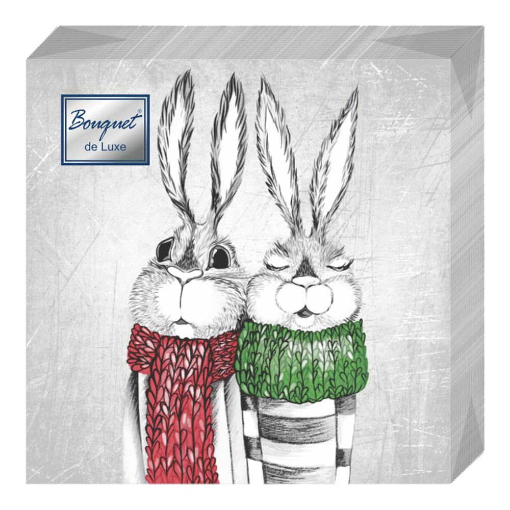 Салфетки бумажные Bouquet de Luxe 3-х слойные, 24 см, Кролики, 25 листов