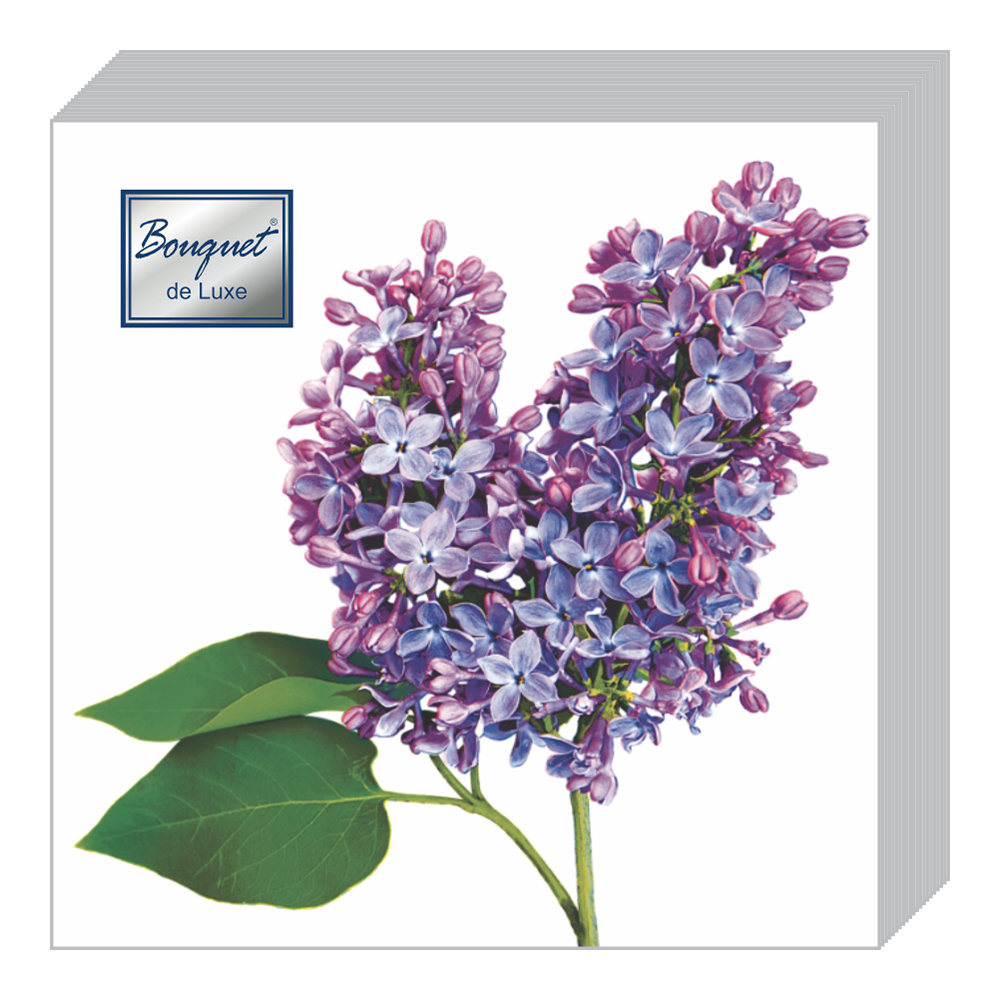 Салфетки бумажные Bouquet de Luxe трехслойные, 24 см, Сирень, 25 листов
