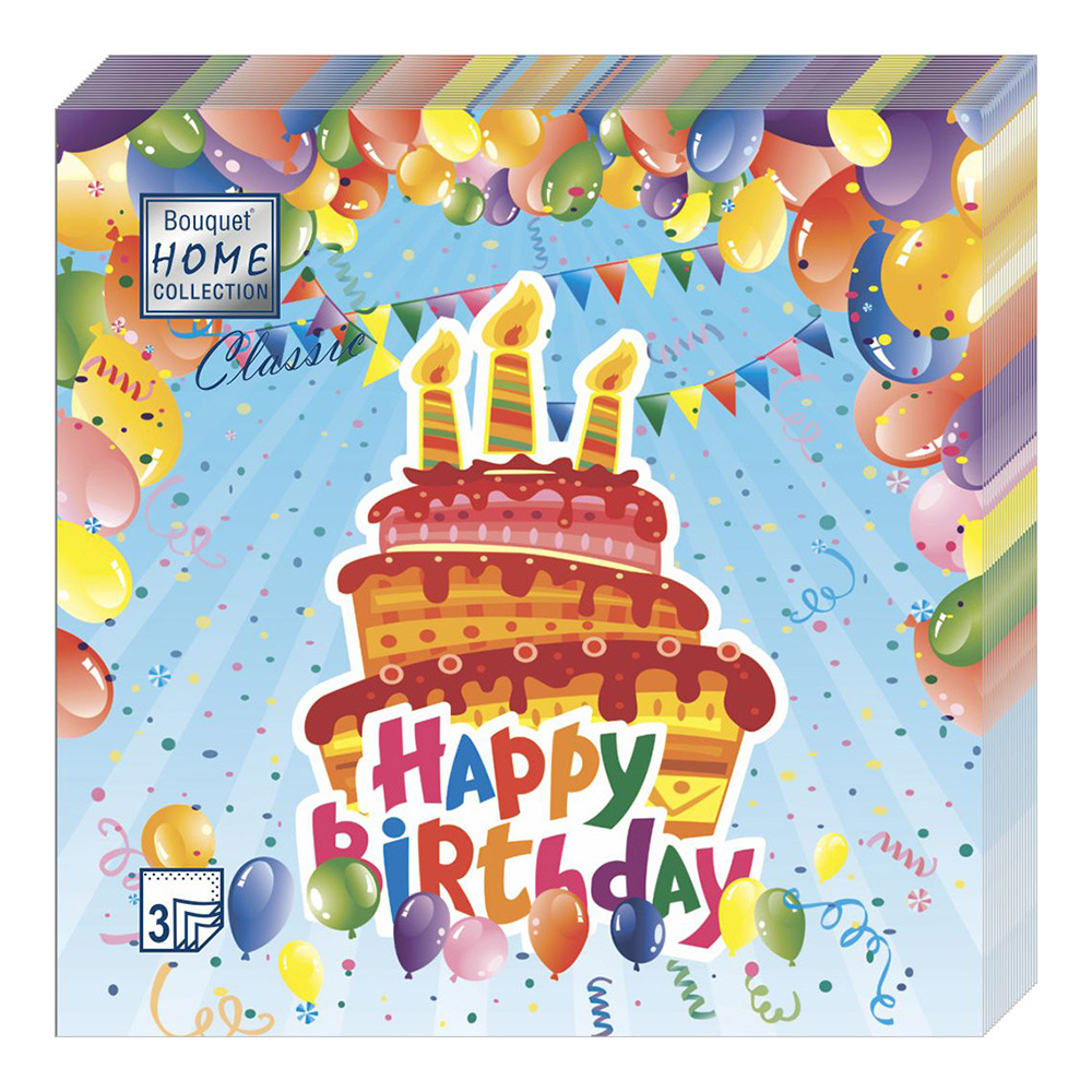 Салфетки бумажные Bouquet Home Collection трехслойные, 33 см, С днем рождения, 20 листов