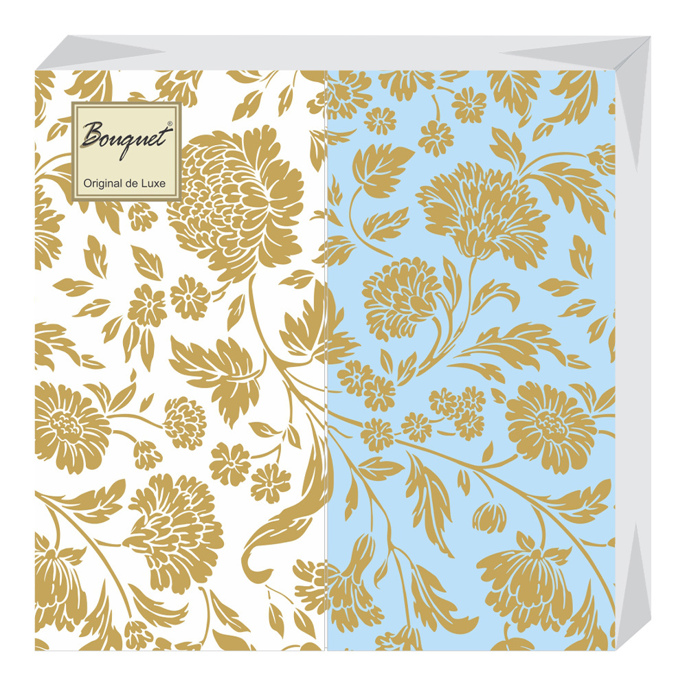 Салфетки бумажные Bouquet Original de Luxe, 2-х слойные, 2 вида по 10 шт, 33 см, MIX Золотая анжелика тиффани, 20 листов
