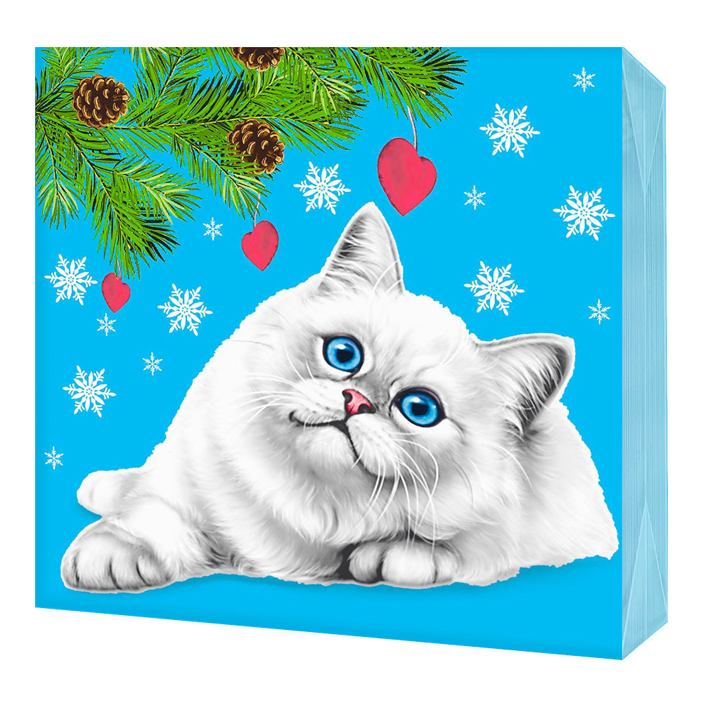 Салфетки бумажные трехслойные, 33*33 см, New line Design, Новогодний котик, 20 листов