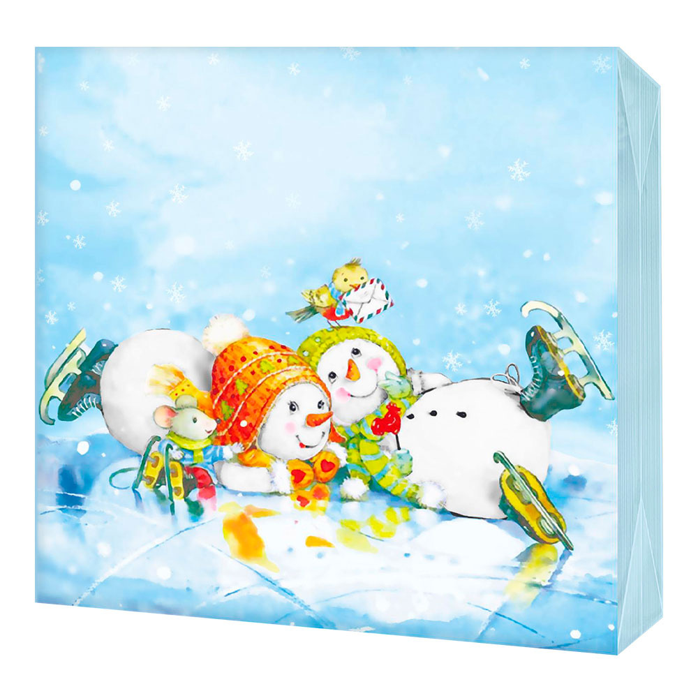 Салфетки бумажные Гармония цвета Снеговички, 24*24 см, 100 листов