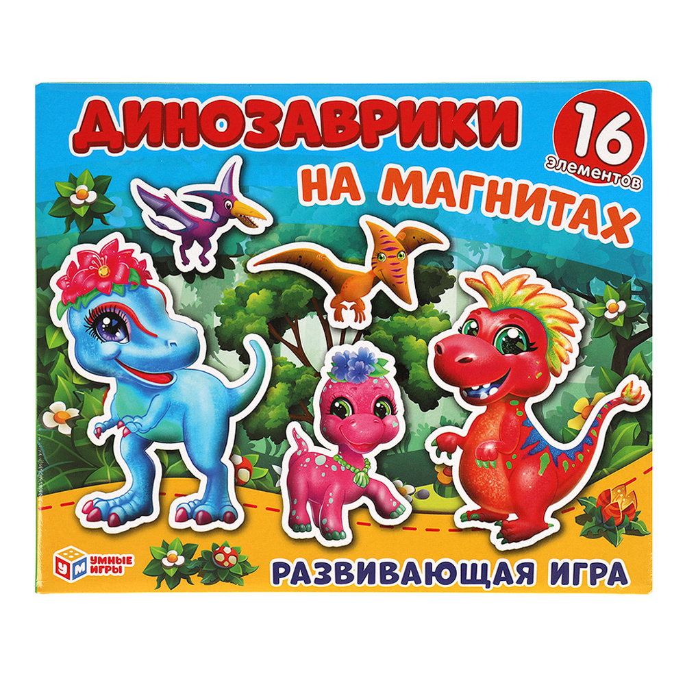 Игра 4680107941602 Динозаврики на магнитах в коробке, 16 элементов
