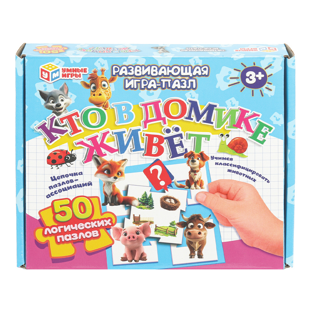 Развивающие карточки 0875 Кто в домике живёт, 50 логических пазлов
