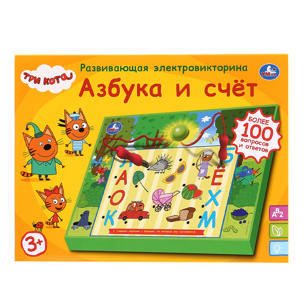 Настольная игра HT662-R Три кота электровикторина, азбука и счет, 100 вопросов
