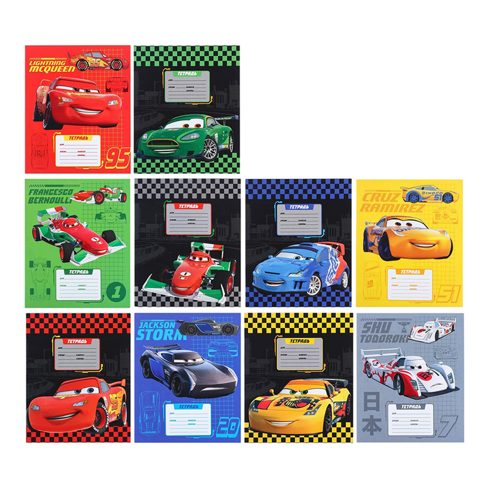 Тетрадь Disney 9827386 в линейку, Тачки, 10 дизайнов, 12 листов
