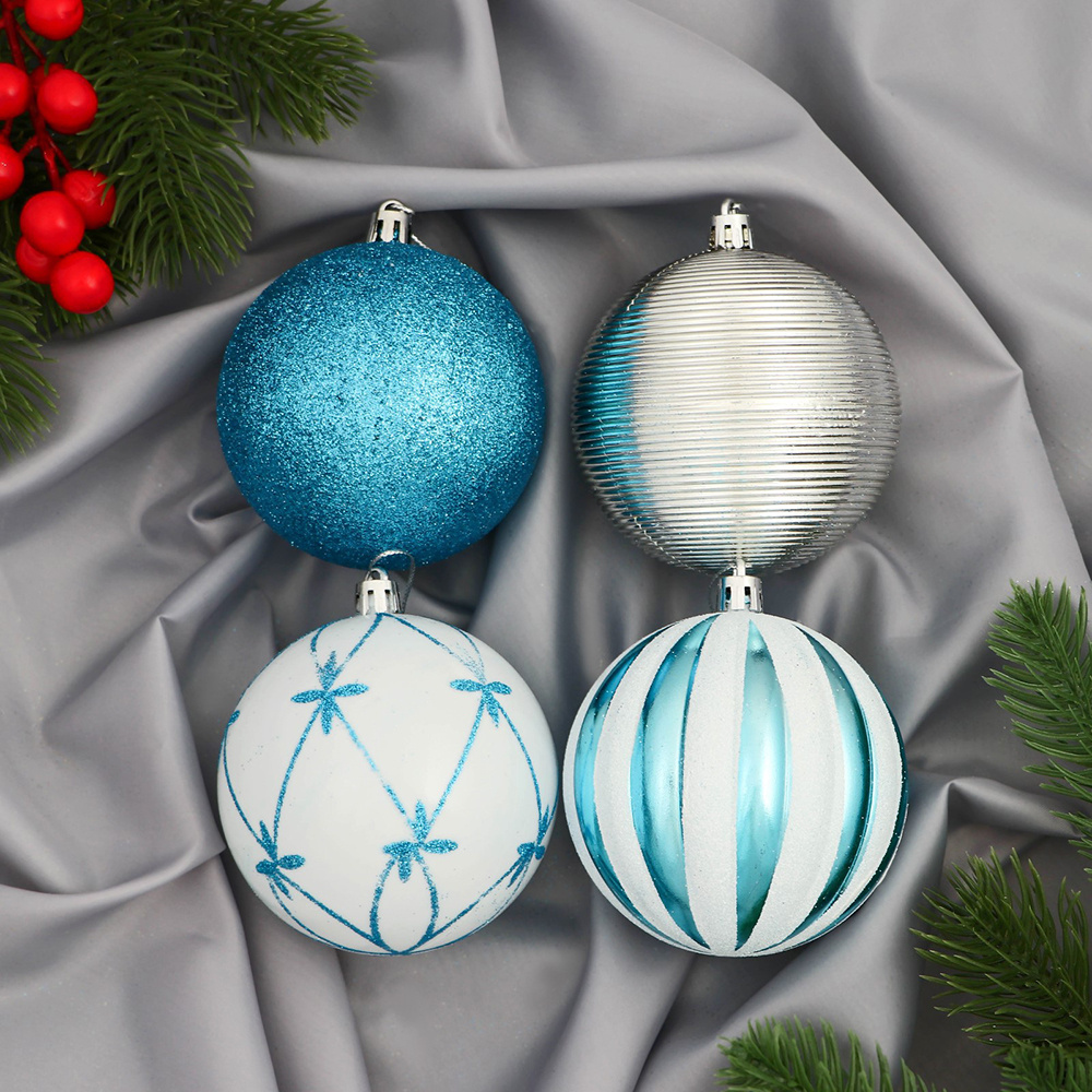 Набор новогодних шаров 9510446 Агнет, узоры, пластик 8 см, микс, 4шт