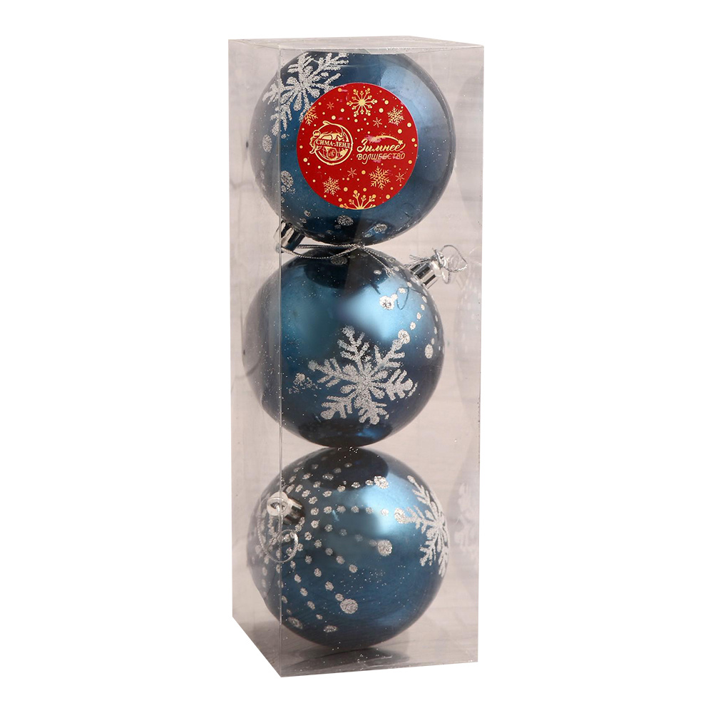 Набор новогодних шаров 6536895 Тихий вечер, пластик 8 см, сине-белый, 3шт