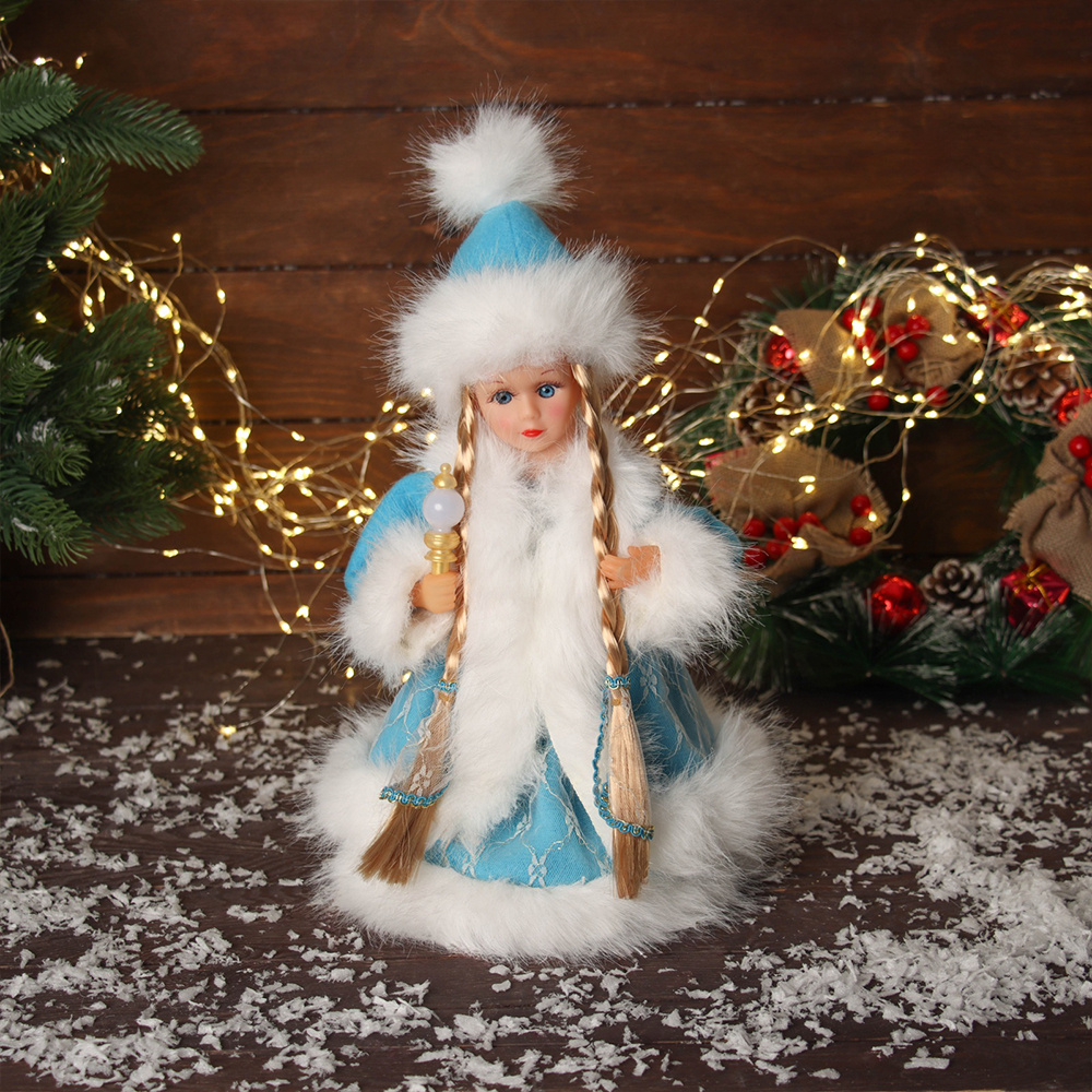 Новогодняя Игрушка Снегурочка 10481684 В пушистой шубке,с фонариком,двигается,подсветка 30 см, голубой