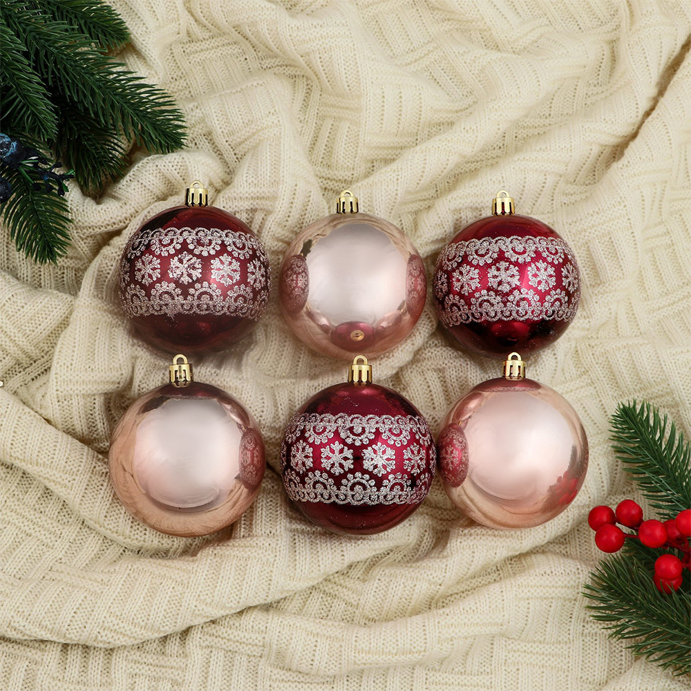 Набор новогодних шаров 9510506 Ночка, элит, узор 8 см, бордовый золото, 6шт