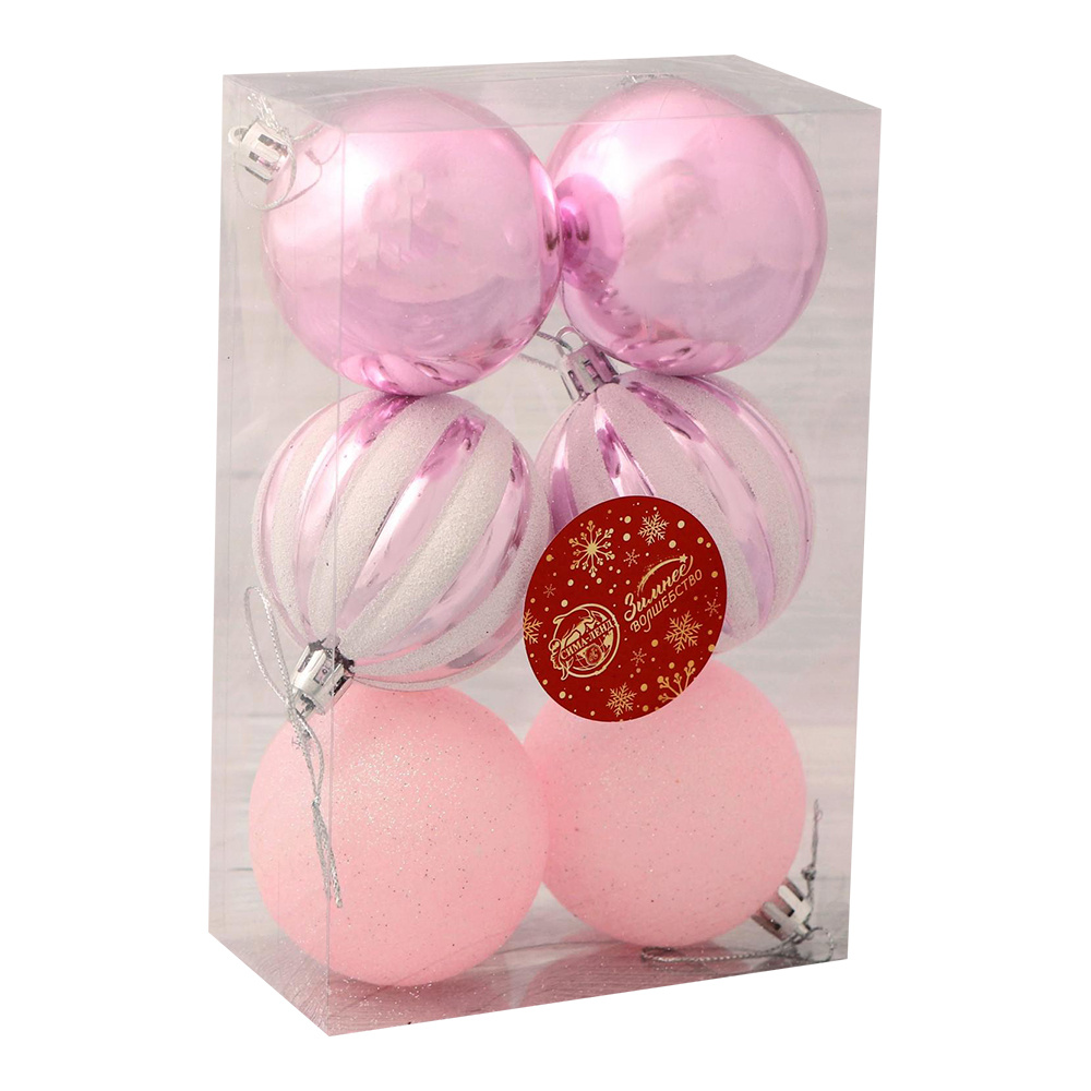 Набор новогодних шаров 2178147 Флёр 5см, пластик, розовый, 6 шт