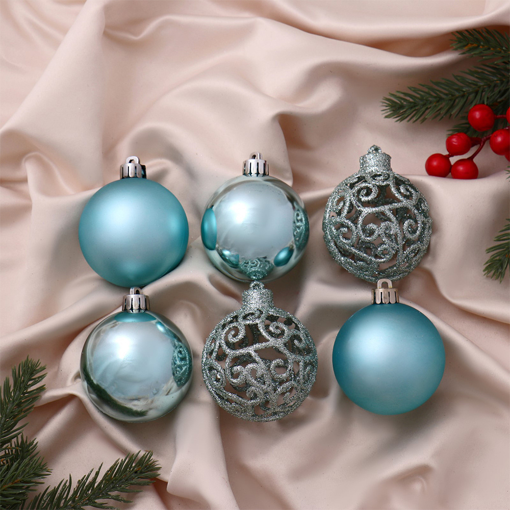 Набор новогодних шаров 4941816 Капучино 6 см, пластик, голубой, 6 шт