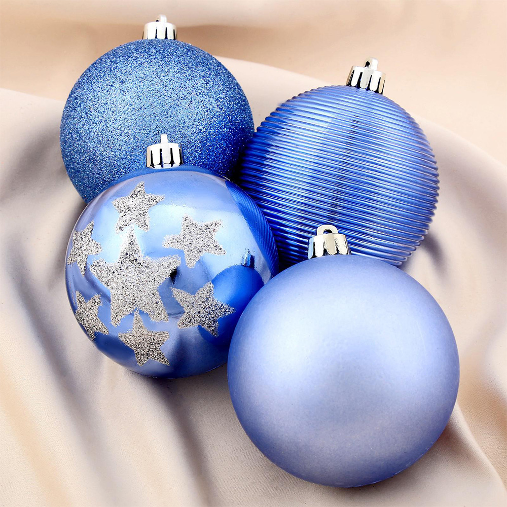 Набор новогодних шаров 4196401 Камея со звёздами 8 см, синий, 6шт