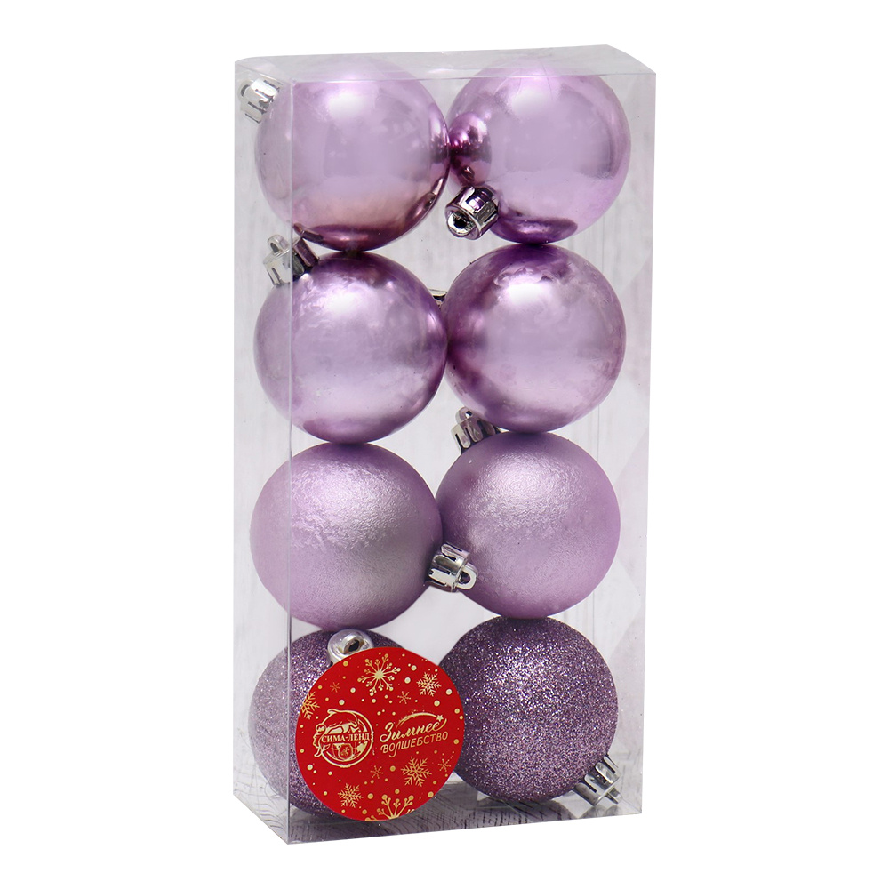 Набор новогодних шаров 6531970 Классика блеск ассорти, пластик 5 см, сиреневый, 8шт