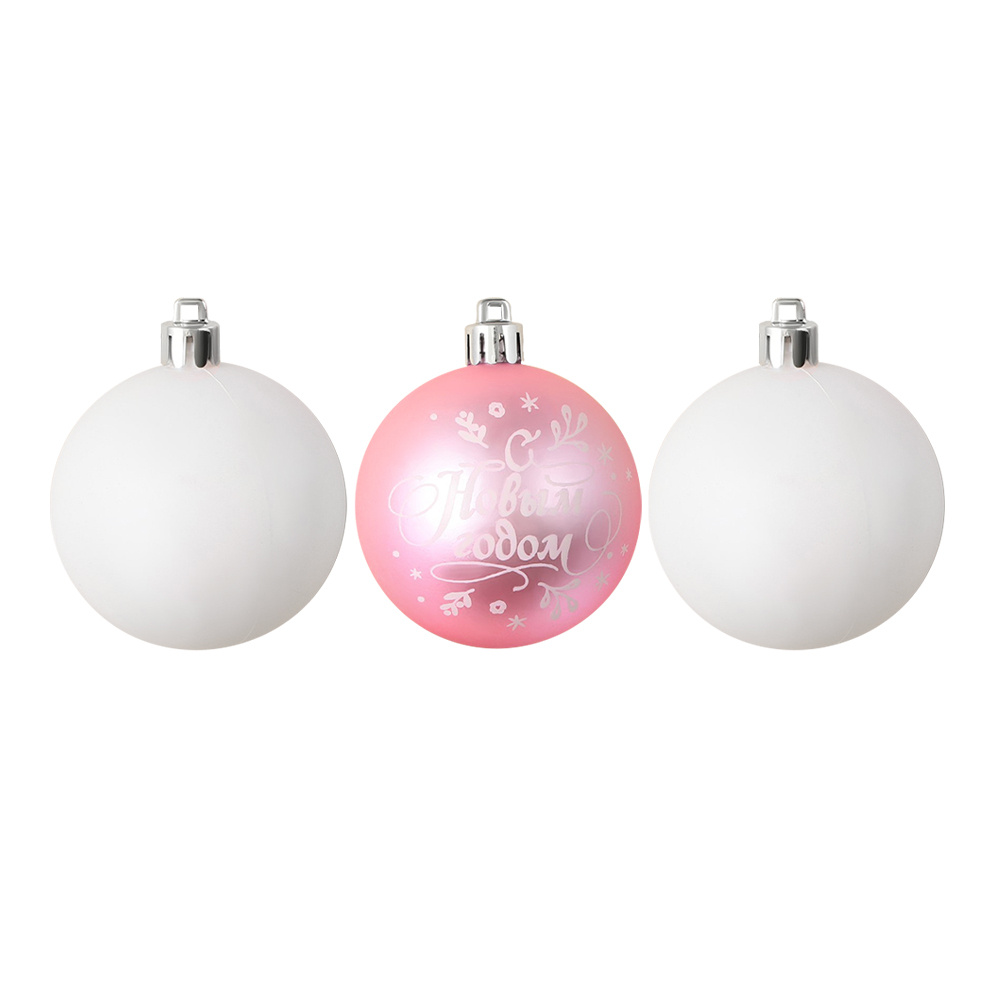Набор новогодних шаров 9489990 С Новым годом! 6 см, нежно-розовый и белый, 3шт