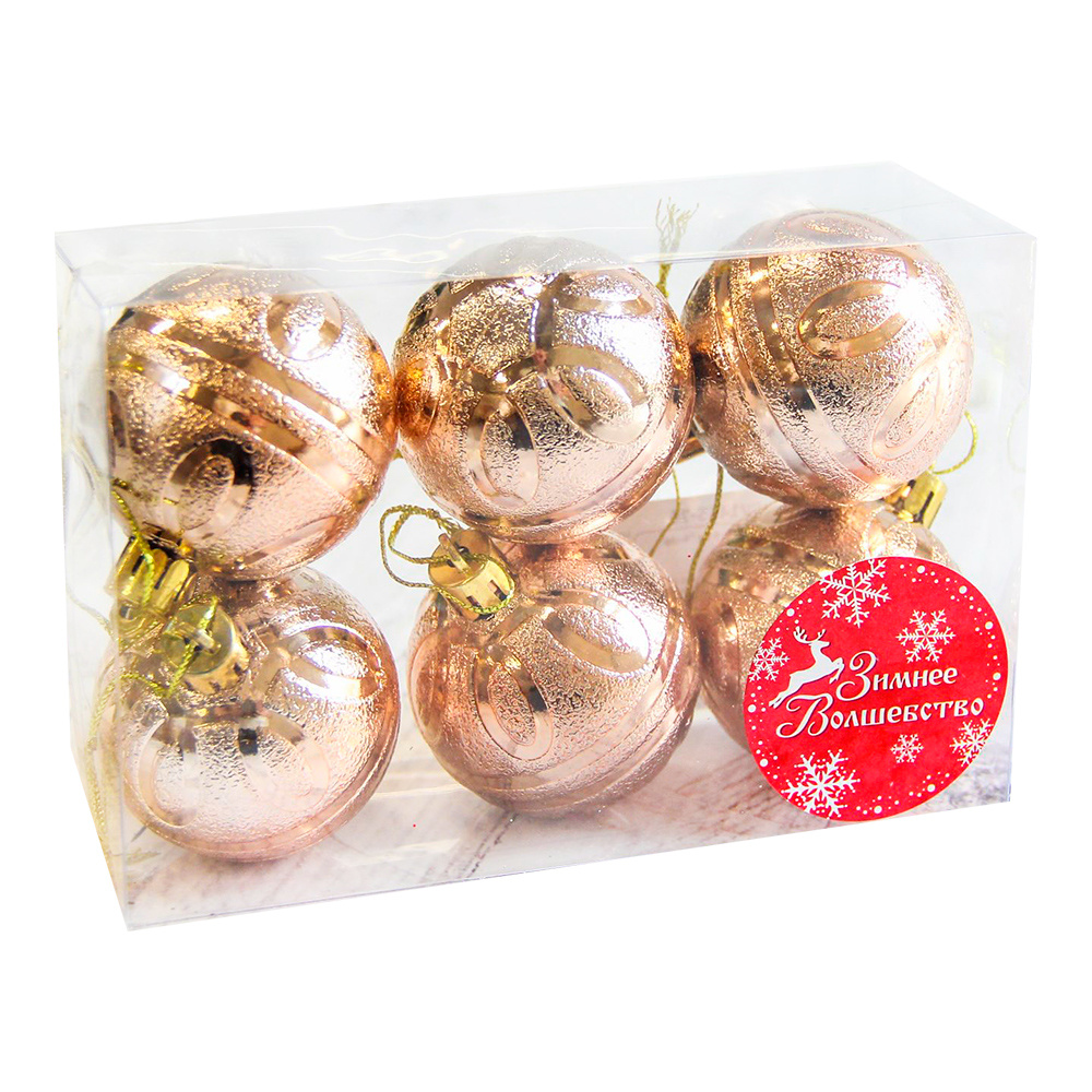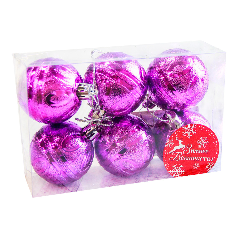 Набор новогодних шаров 2178147 Флёр 5см, пластик, розовый, 6 шт