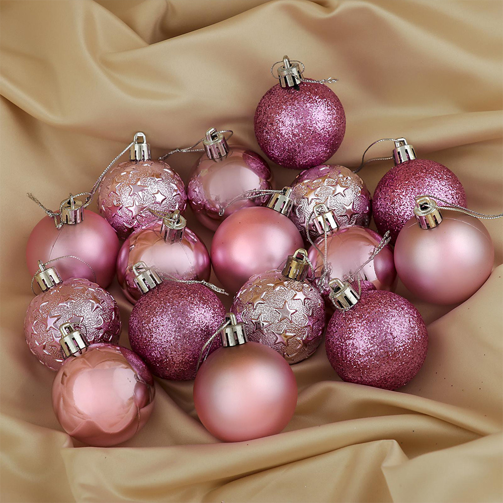 Набор новогодних шаров 3505635 Звёздная ночь 5 см, розовый, 16шт
