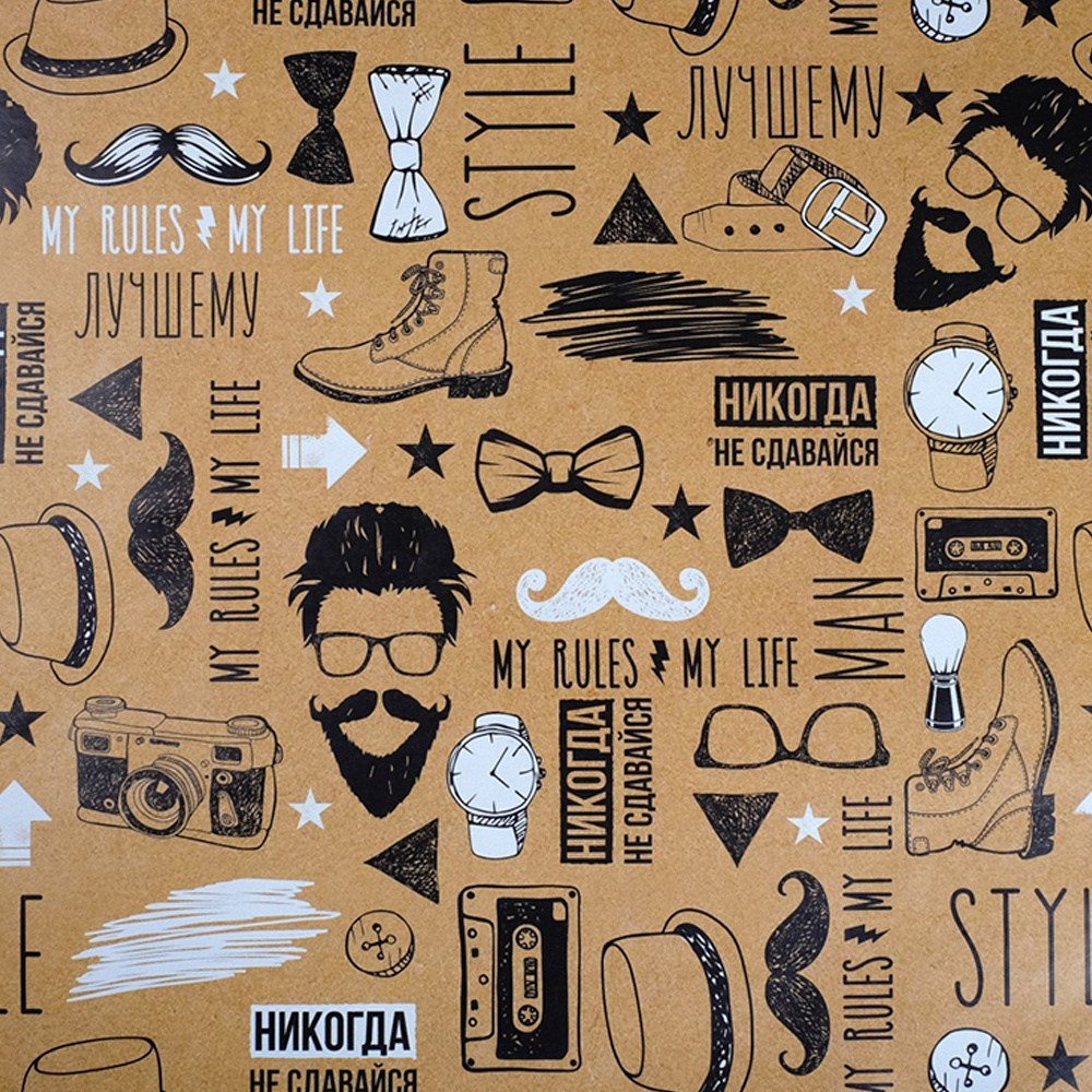Бумага упаковочная 4702730 Брутальному мужчине, глянцевая двухсторонняя 70*100 см, бежевый,черный