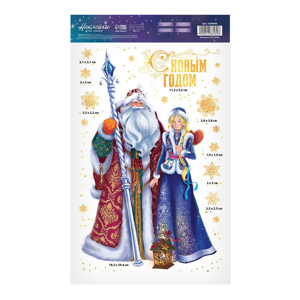 Наклейка на окно 4288489 Дед Мороз и снегурочка, Новый год, многоразовые 20*34 см