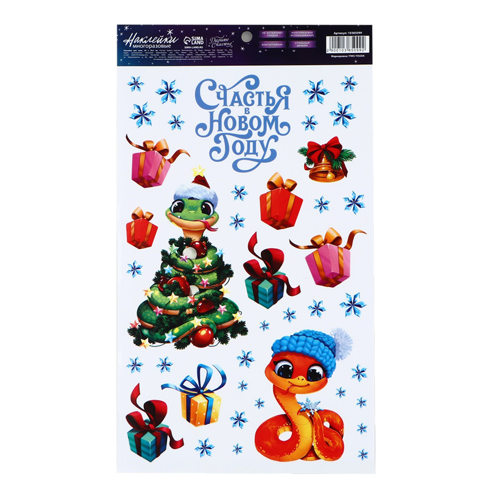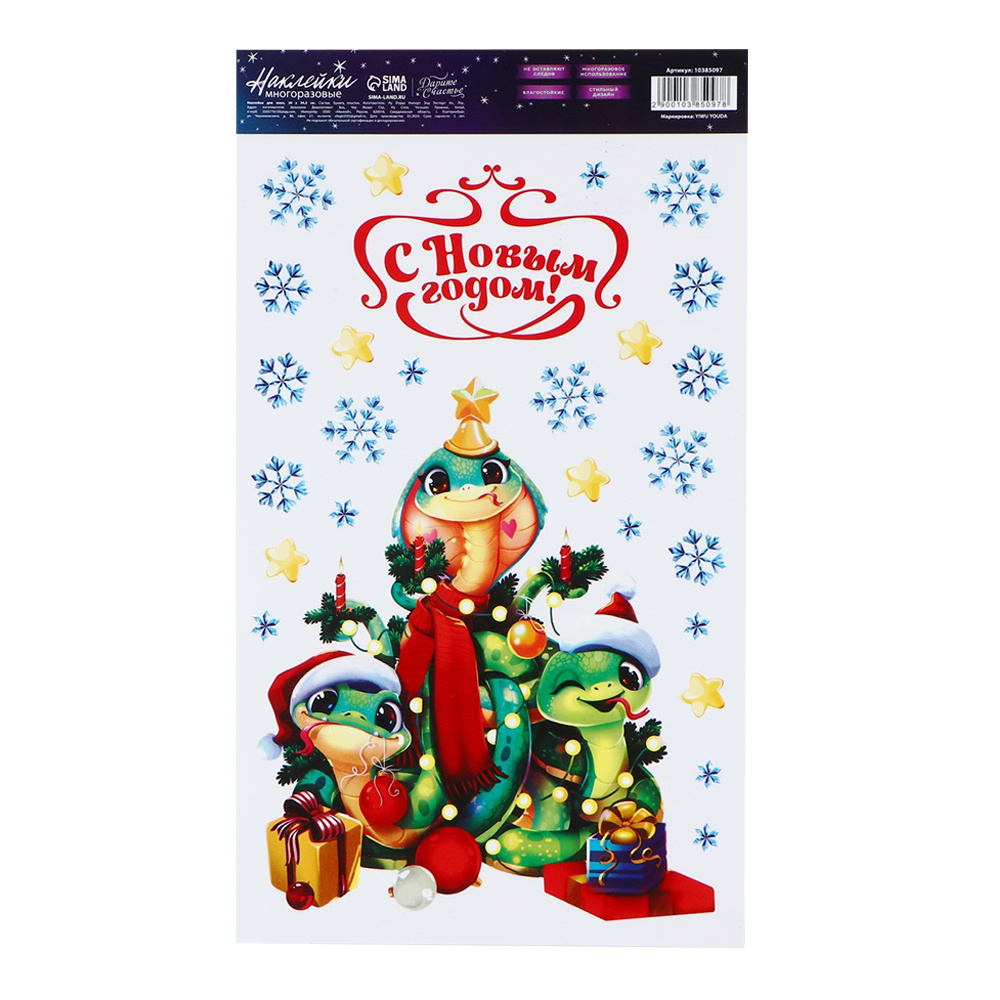 Наклейка на окно 10385099 Змея 2025, Новый год, многоразовые 20*34,5 см