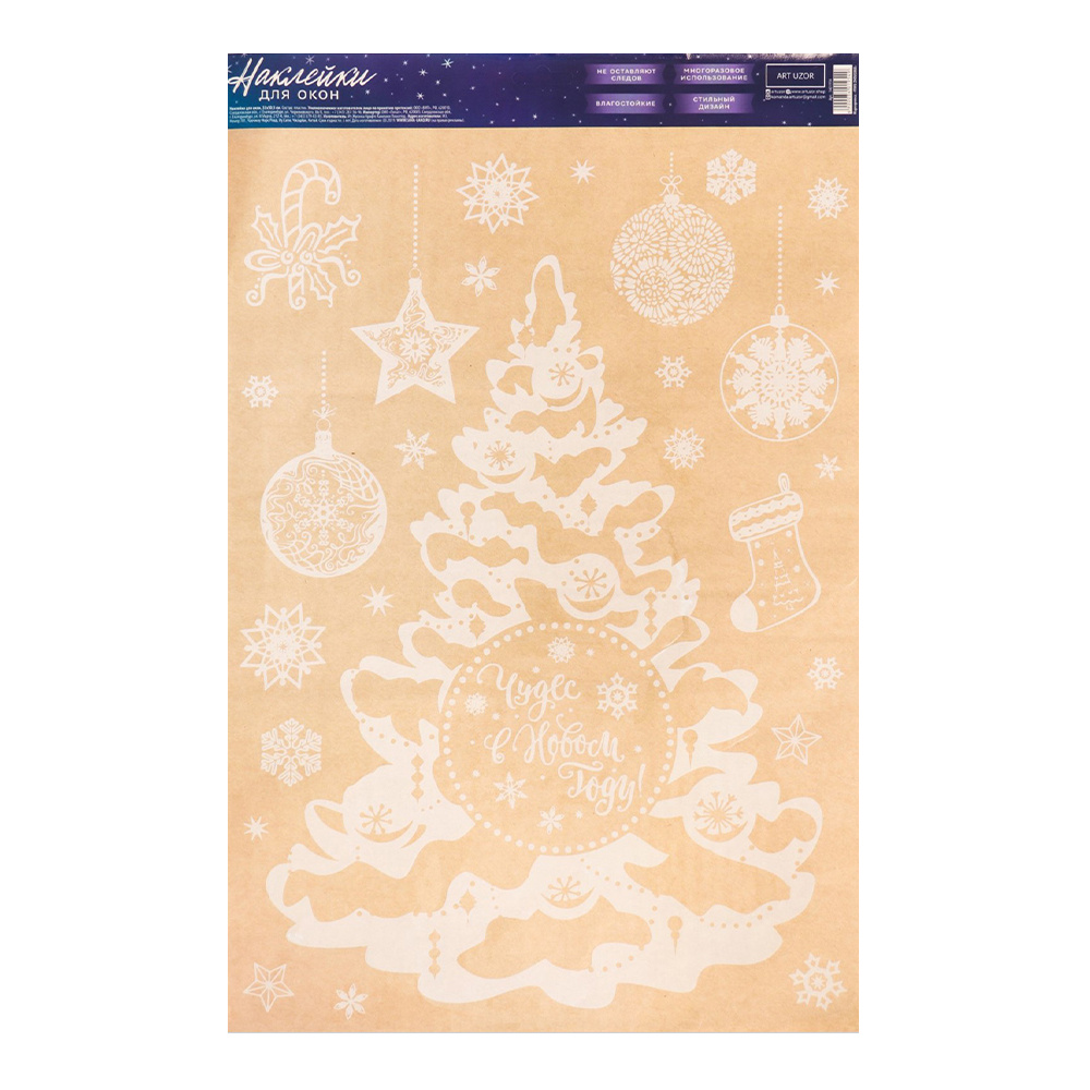 Наклейка на окно 3401954 Зимняя ёлочка, Новый год, многоразовые 33*50 см