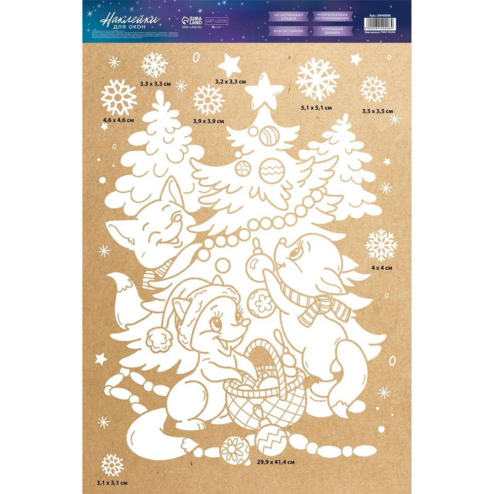 Наклейка на окно 6940006 Зимняя компания, Новый год, многоразовые 33*50 см
