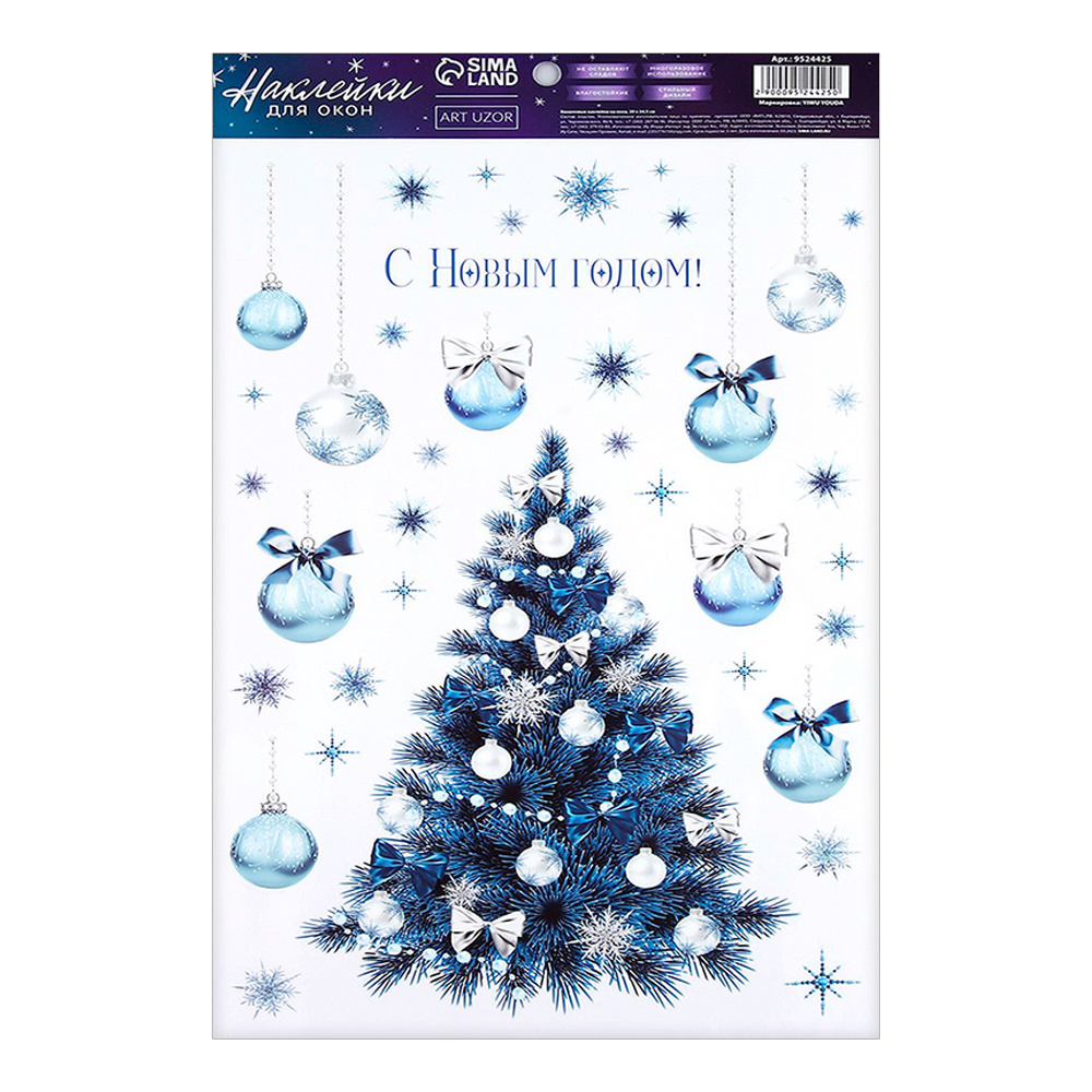 Наклейка на окно 3401954 Зимняя ёлочка, Новый год, многоразовые 33*50 см