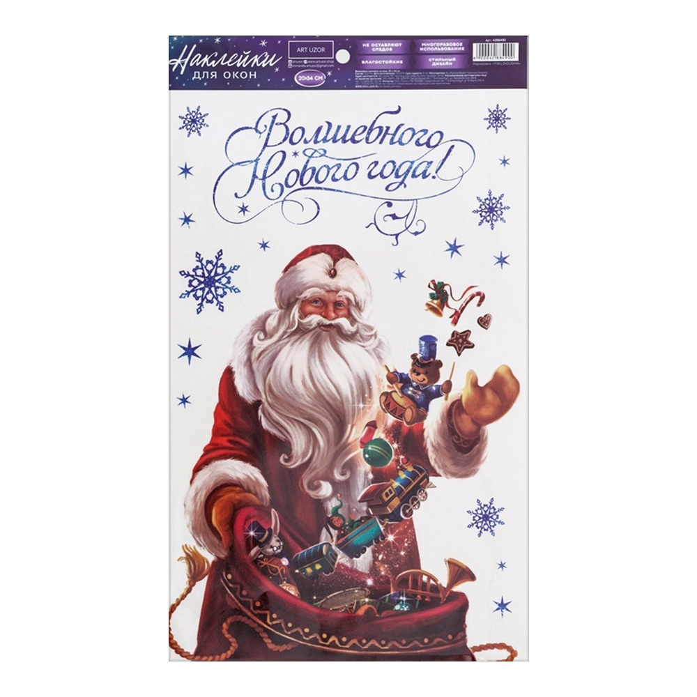 Наклейка на окно 4288490 Волшебного Нового года, многоразовые 20*34 см