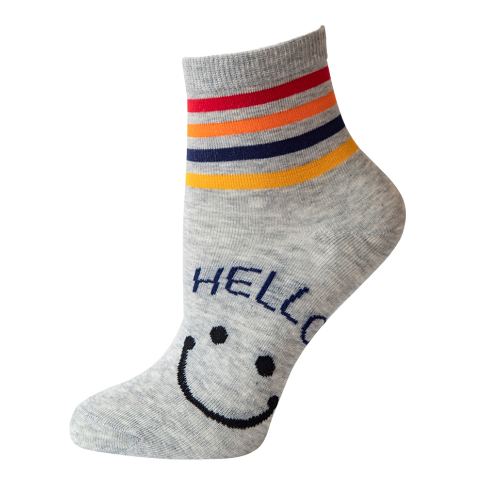 Носки детские для девочек Oemen PK236 с рисунком смайл с полосками, размер 16-18, серый