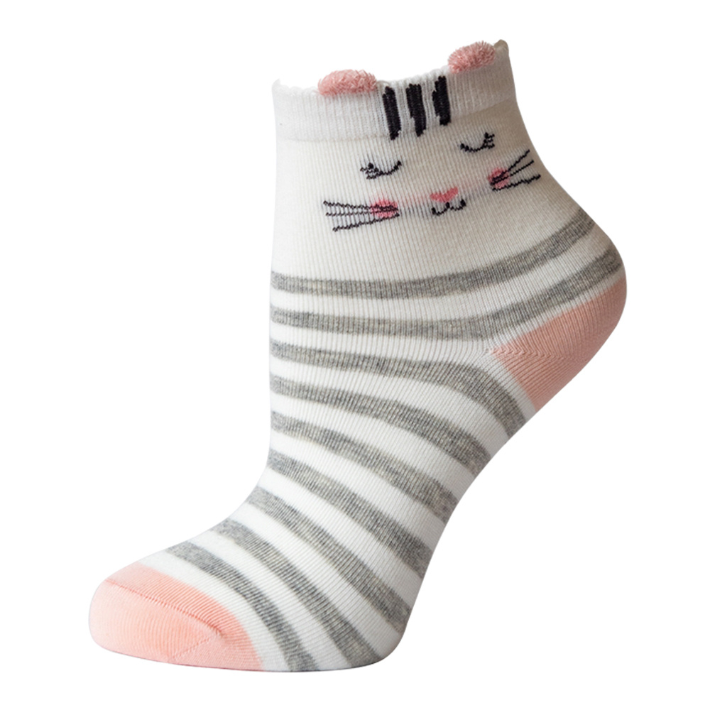Носки детские для девочек Oemen PK150 с рисунком котик в паголенке,резинка с ушками, размер 20-22, бело-серый