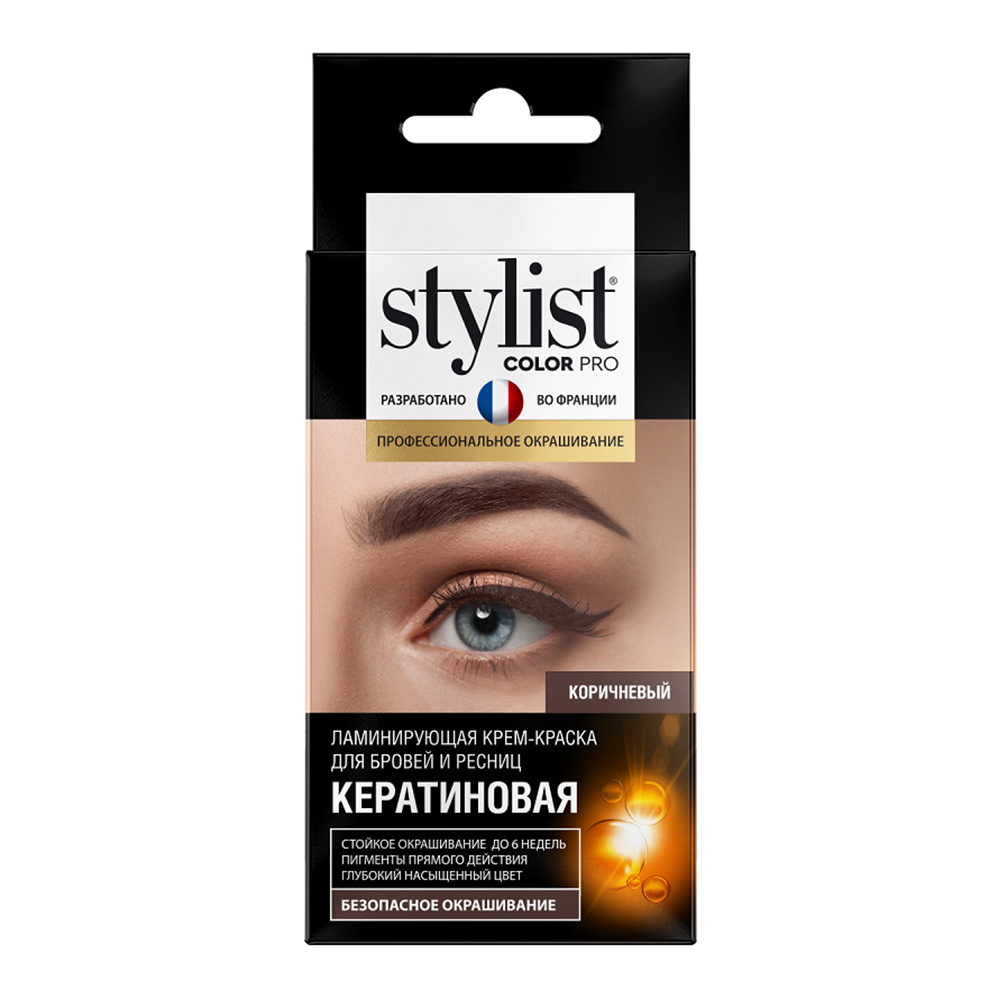 Краска для бровей и ресниц Stylist Color Pro ламинирующая, кератиновая, коричневый, 4 мл