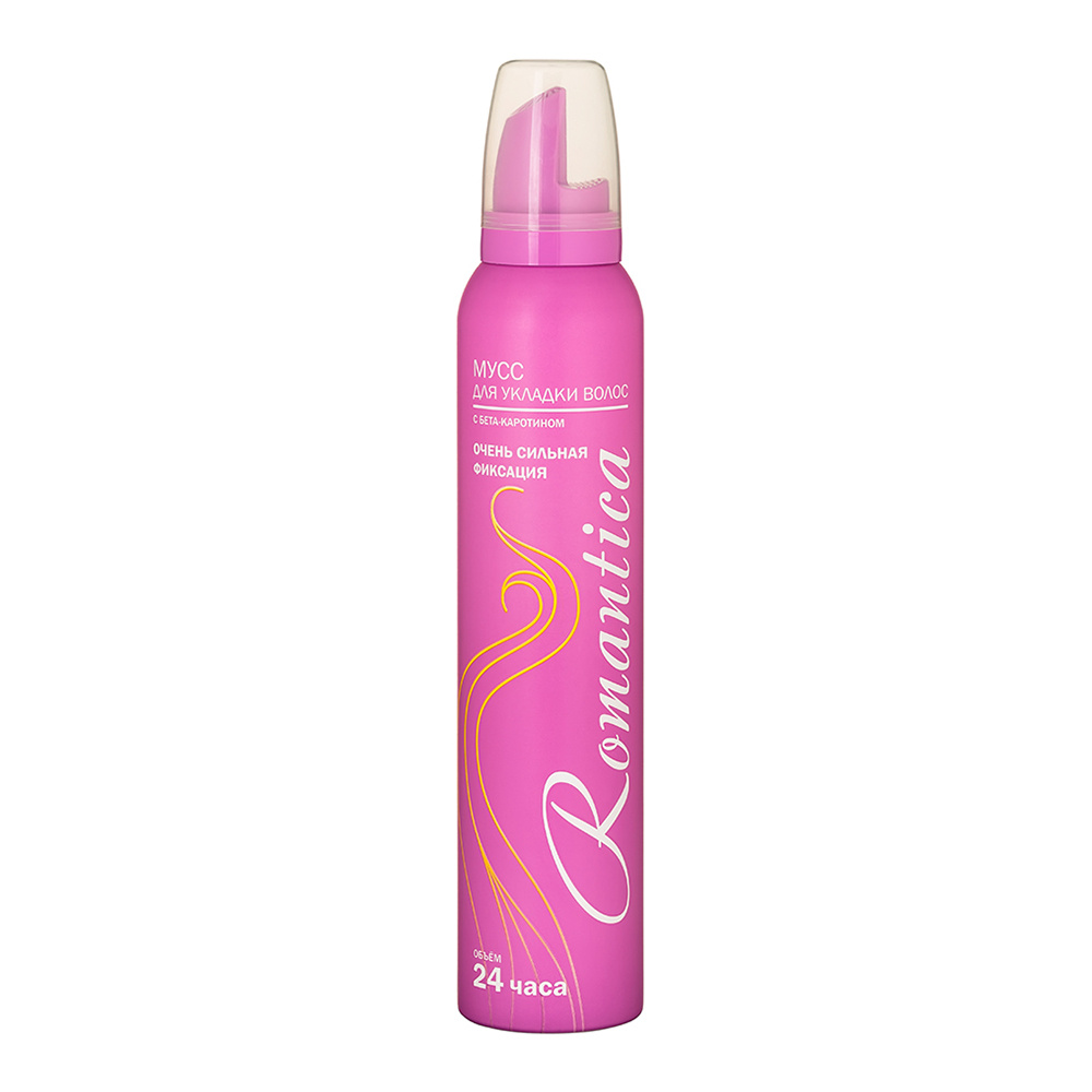 Мусс для укладки волос Романтика Розовый с бета-каротином, очень сильная фиксация, 200 мл