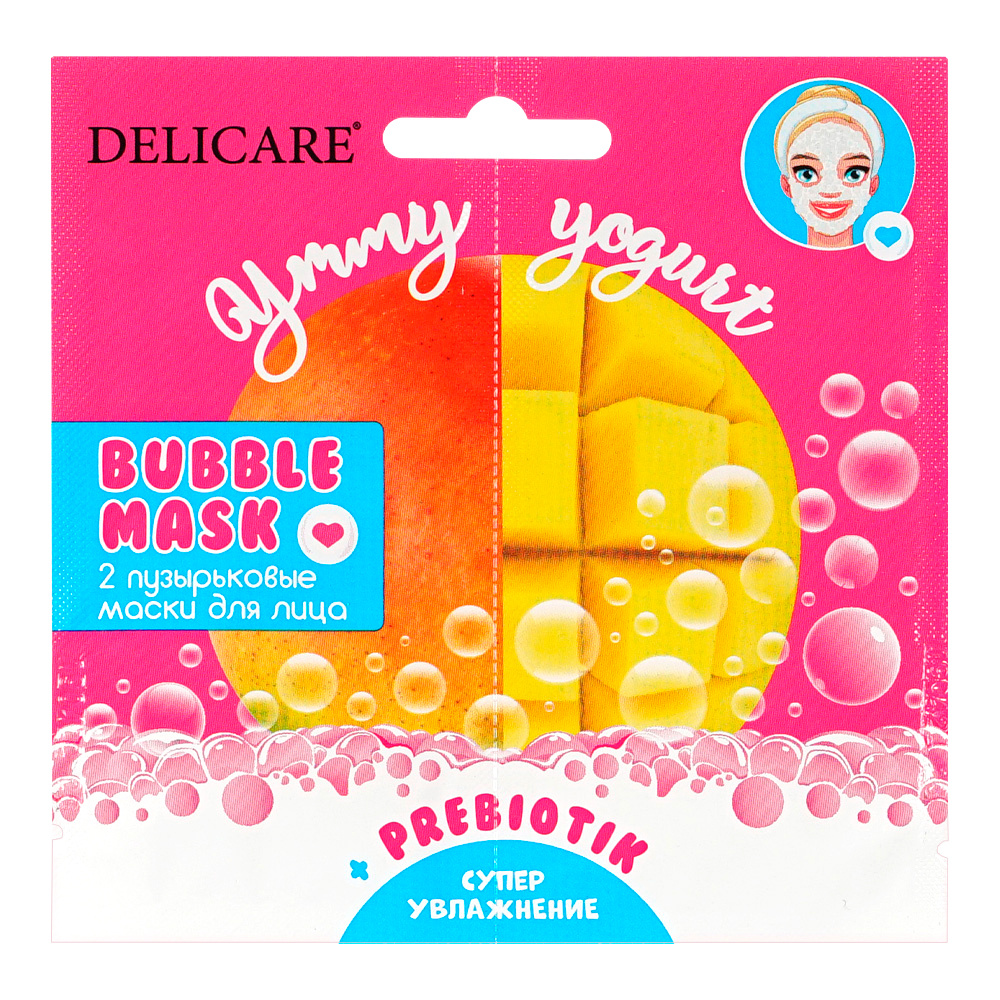 Маска для лица Delicare пузырьковая увлажняющая с пребиотиками манго, 2 шт