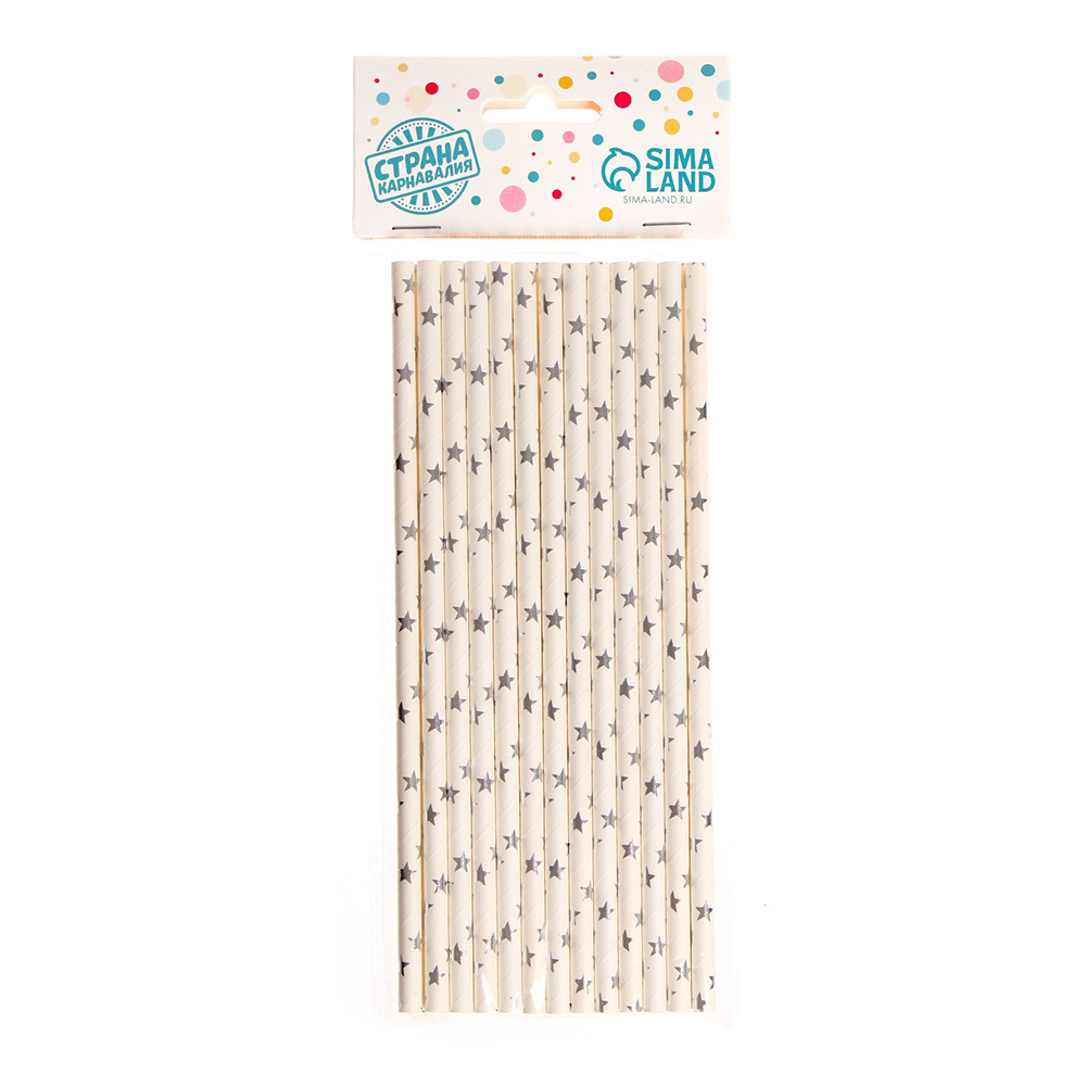 Трубочки 1498617 для коктейля Звёздочки,12 шт, серебряный