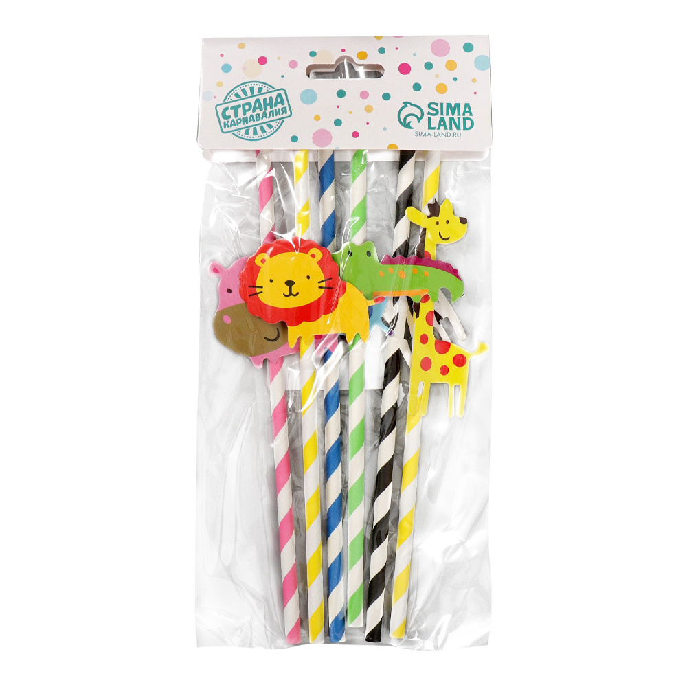 Трубочки 5153971 для коктейля Зоопарк, 6 шт