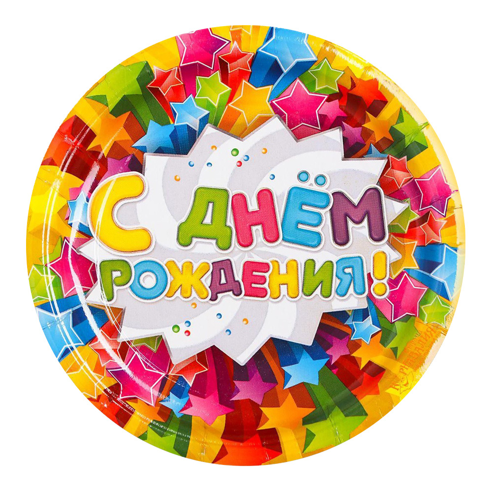 Тарелка 334184 бумажная, С днем рождения! 6 шт 18 см
