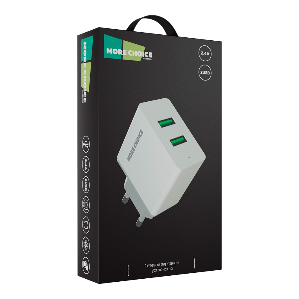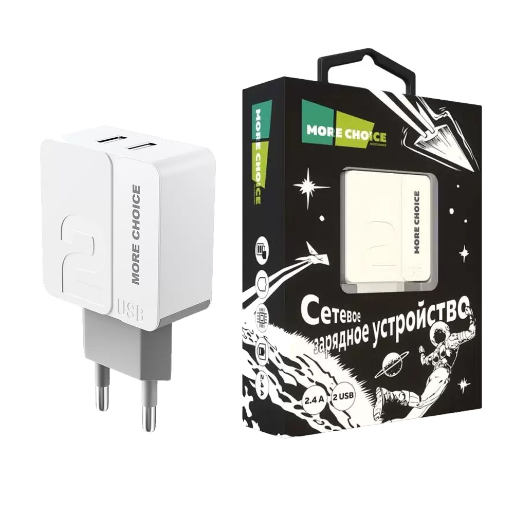 Зарядное устройство MoreChoice NC46 2USB 2.4 A, White
