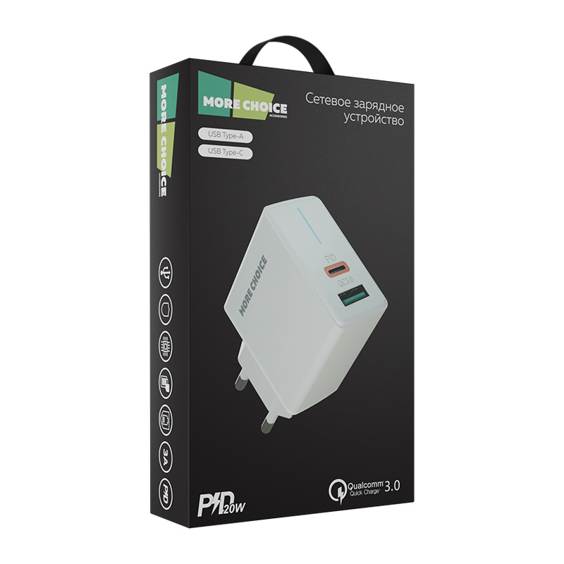 Зарядное устройство MoreChoice NC60 1Type-C PD 20W 3.0A, белый